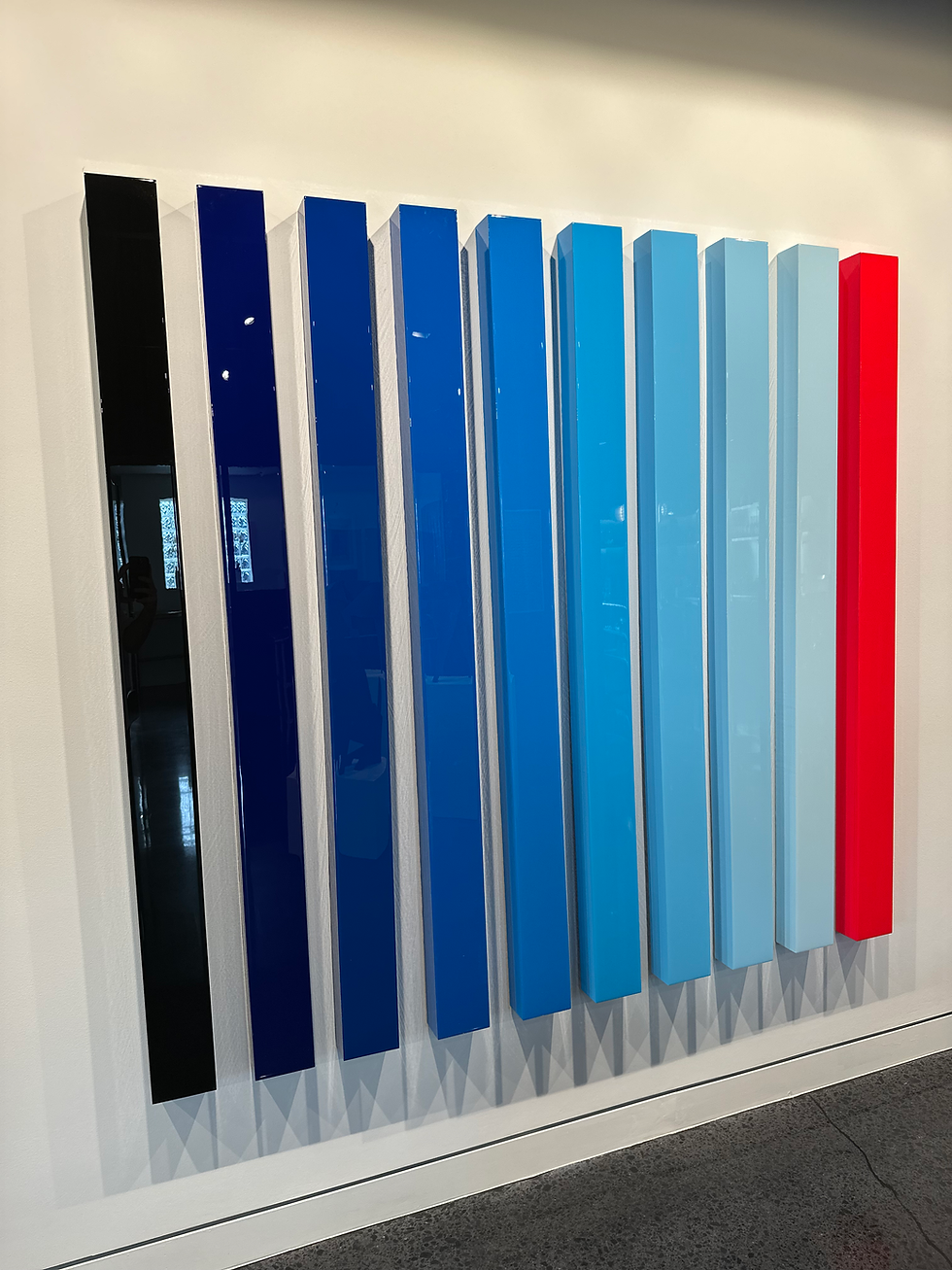 These bright and fun creations are produced using the same processes as the artist’s full-size paintings, and are a great option for your desk, mantel, or bookshelf in smaller spaces. They can also be grouped together, and wall mounted in multiple configurations.