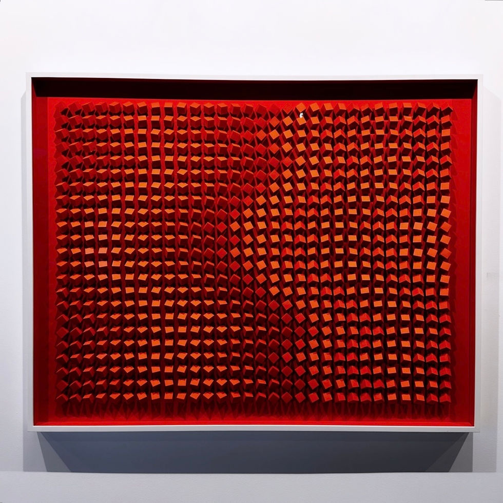 Blue Triangle Triptych with Fluorescent Pink